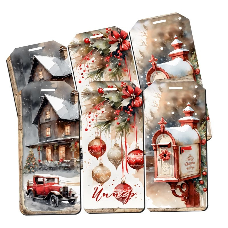 Nyomtatott dekorkarton - Karácsonyi piros táblák - 6 db/csomag