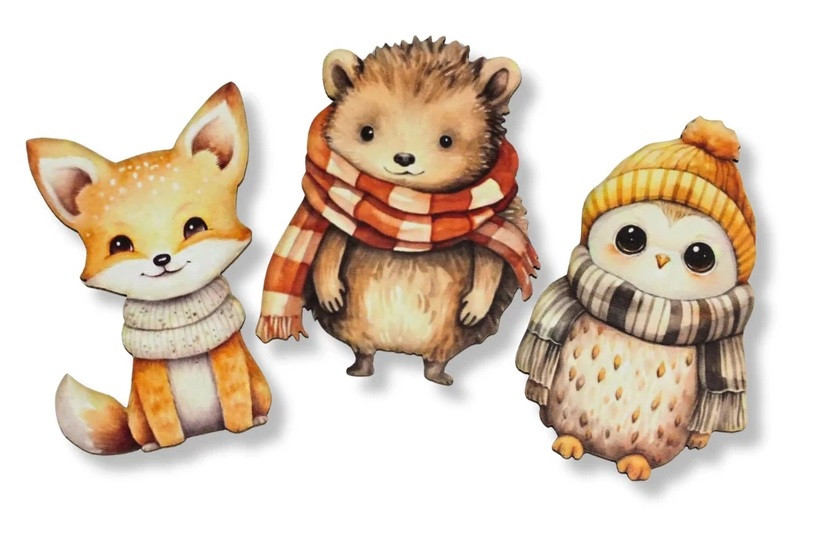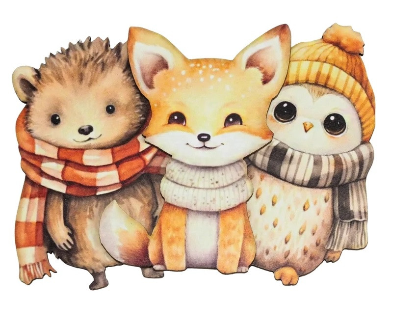 Nyomtatott dekorkarton - Rajzos őszi állatok - 7-8cm - 3 db/csomag