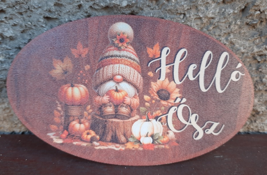 Nyomtatott fa tábla - Helló Ősz - 15x9 cm