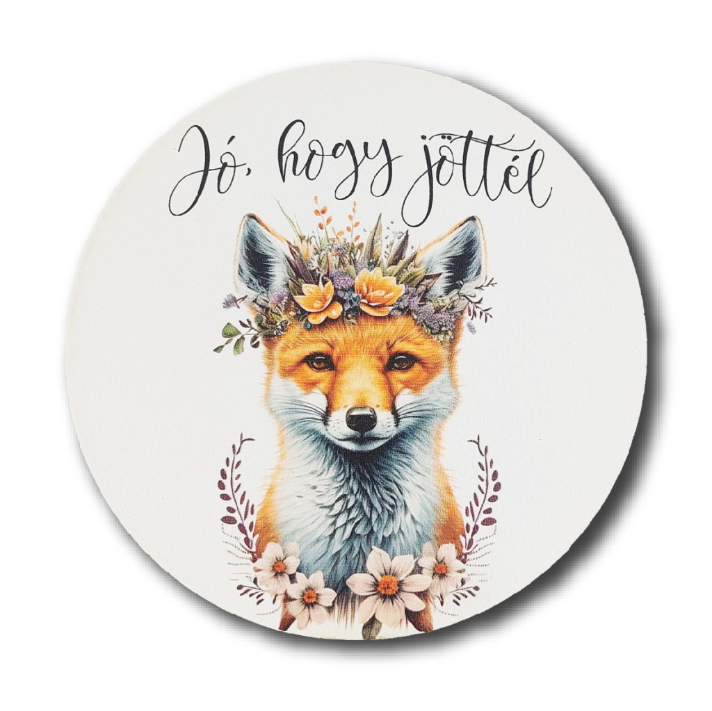 Nyomtatott fa tábla - Jó hogy jöttél - Róka - 13 cm