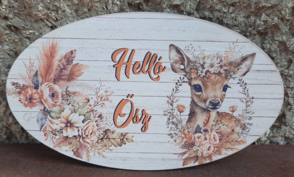 Hello ősz fatábla - Őzike 2. - 15,5x9,5 cm