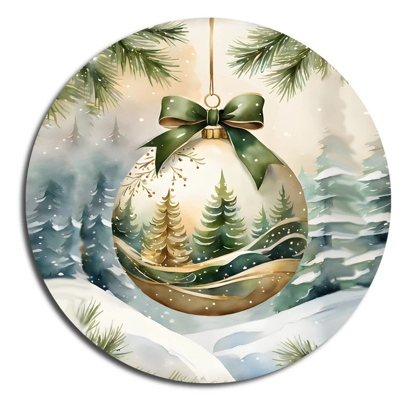 Nyomtatott fa tábla koszorú közép - Karácsonyi zöld koszorú közép - 11,8 cm