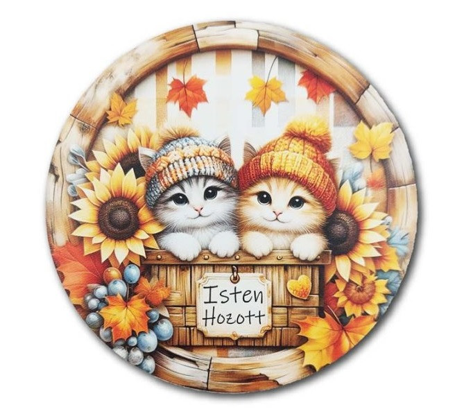 Nyomtatott fatábla - Isten hozott - Cica - 13 cm