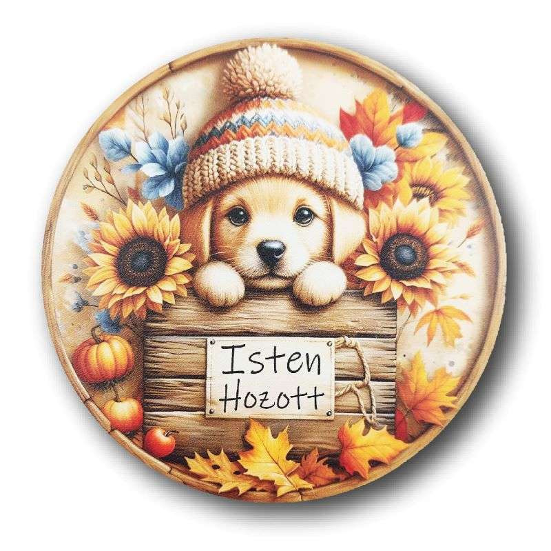Nyomtatott fatábla - Isten hozott - Kutya - 13 cm