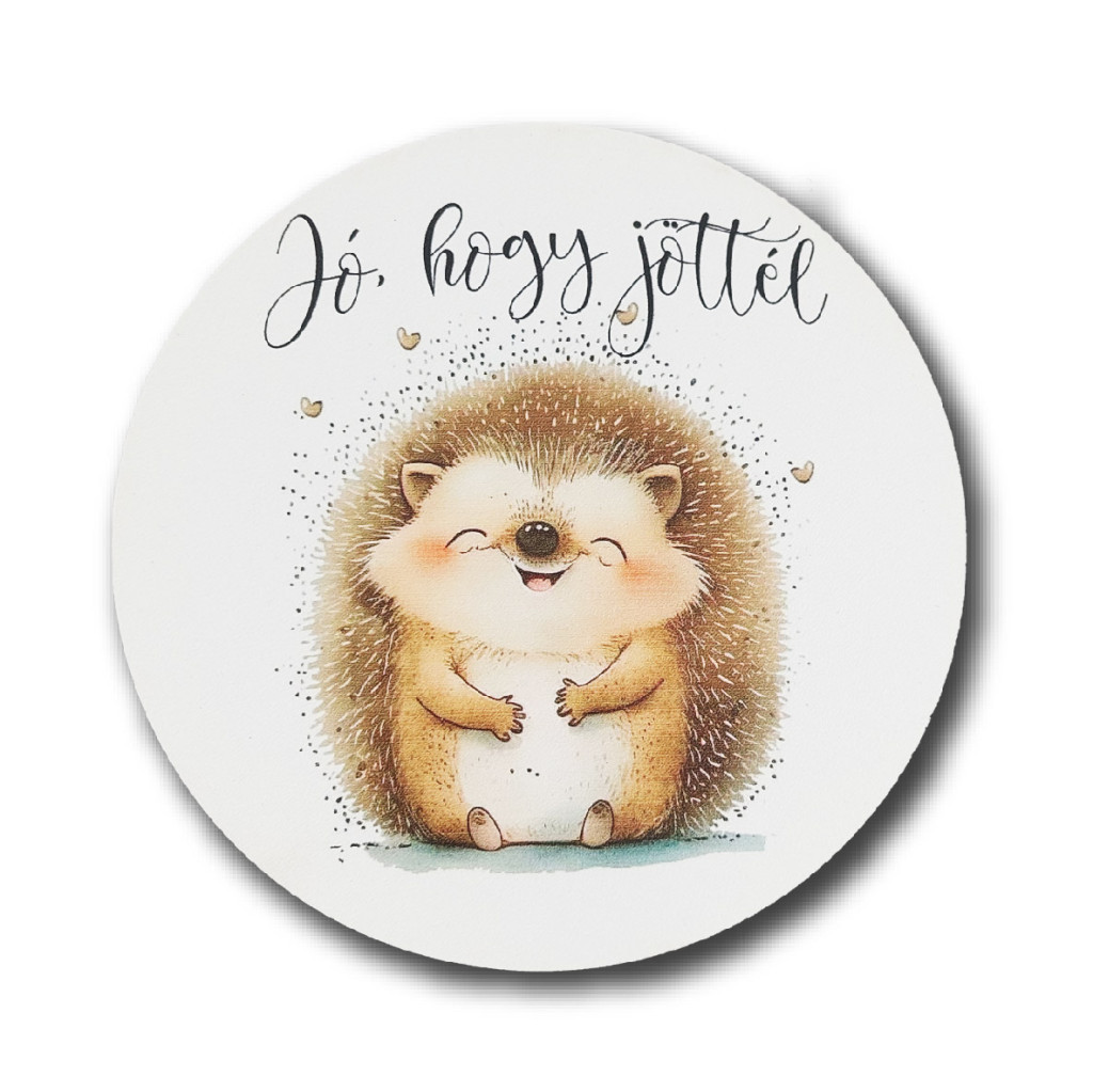 Nyomtatott fatábla - Jó, hogy jöttél - Süni - 13 cm