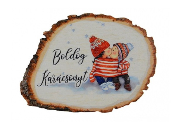 Nyomtatott fatábla - Karácsony puszilkodós pár - 5 cm