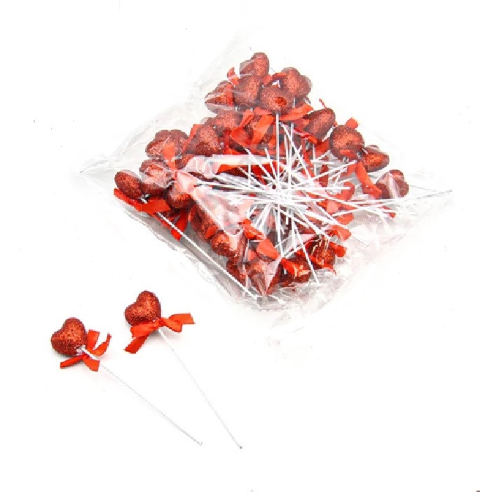 Pálcás szív -11 cm - Piros - 50 db/csomag