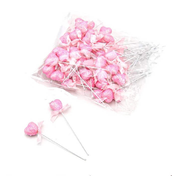 Pálcás szív -11 cm - Rózsaszín - 50 db/csomag