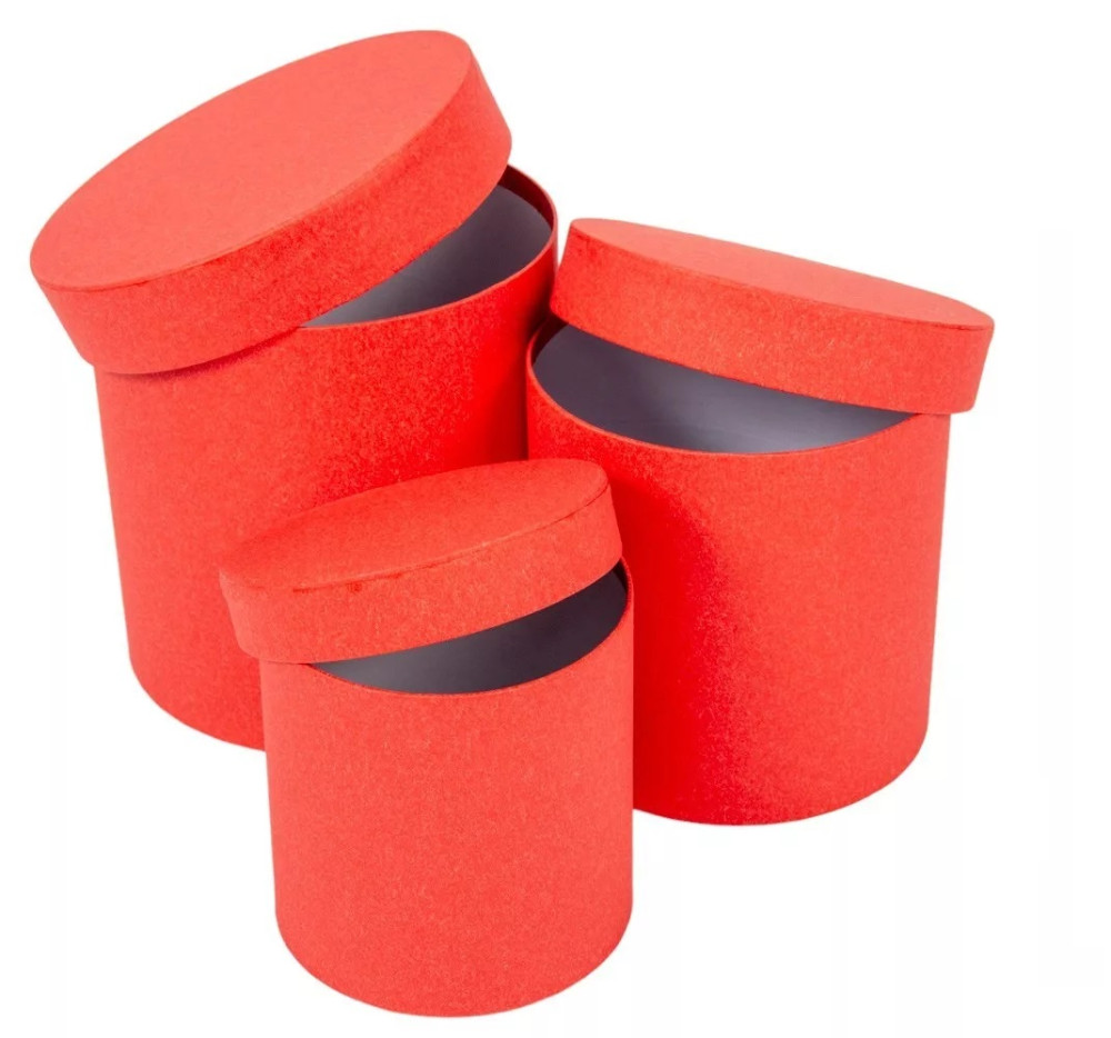Papír doboz kerek magas piros - 17-15-12 cm - 3 db-os szett