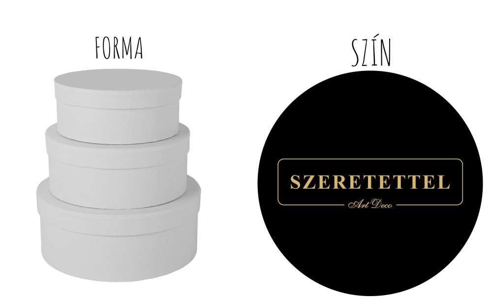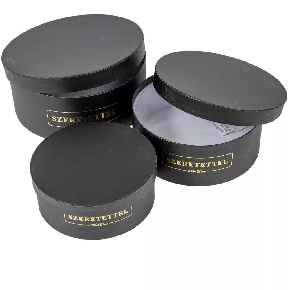 Papírdoboz kerek fekete - "Szeretettel" - 3 db-os szett