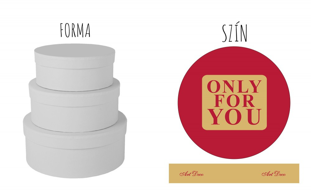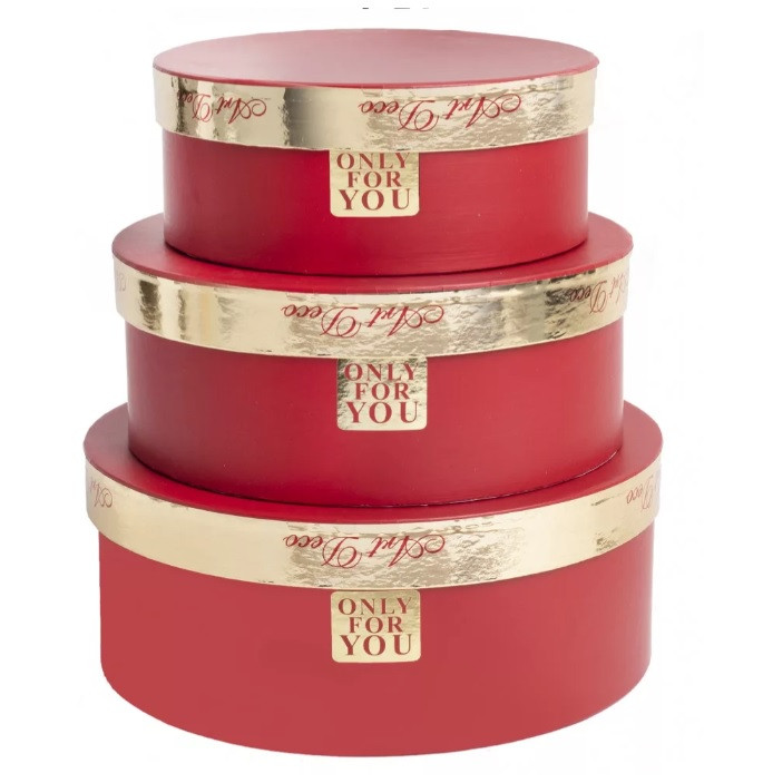 Papírdoboz kerek - Piros-arany - "Only for you" - 3 db-os szett
