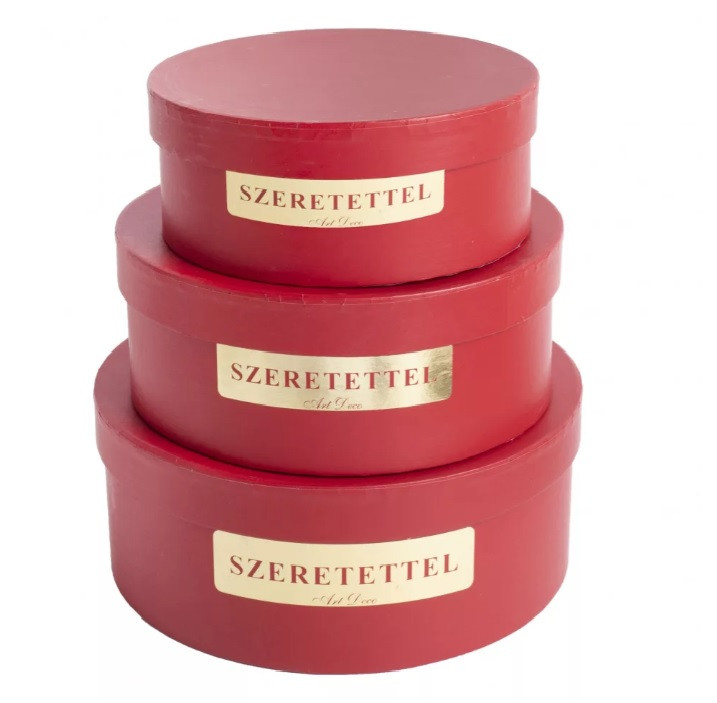 Papírdoboz kerek piros - "Szeretettel" - 3 db-os szett
