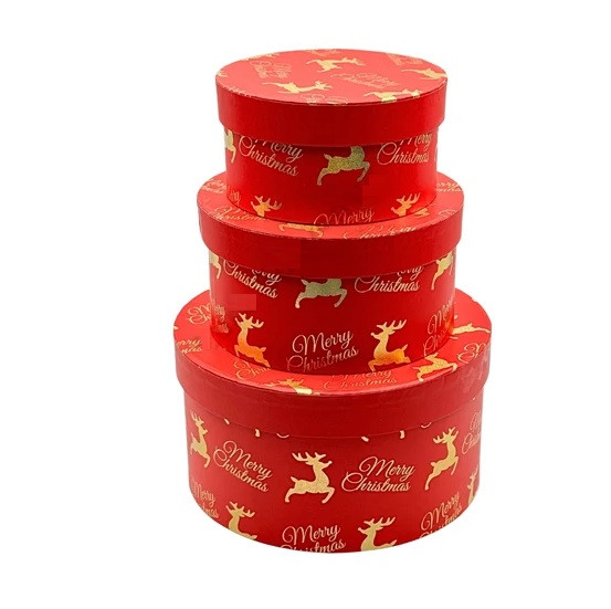 Piros karácsonyi doboz - Szarvas - 21 cm, 17 cm, 14 cm - 3 db-os szett