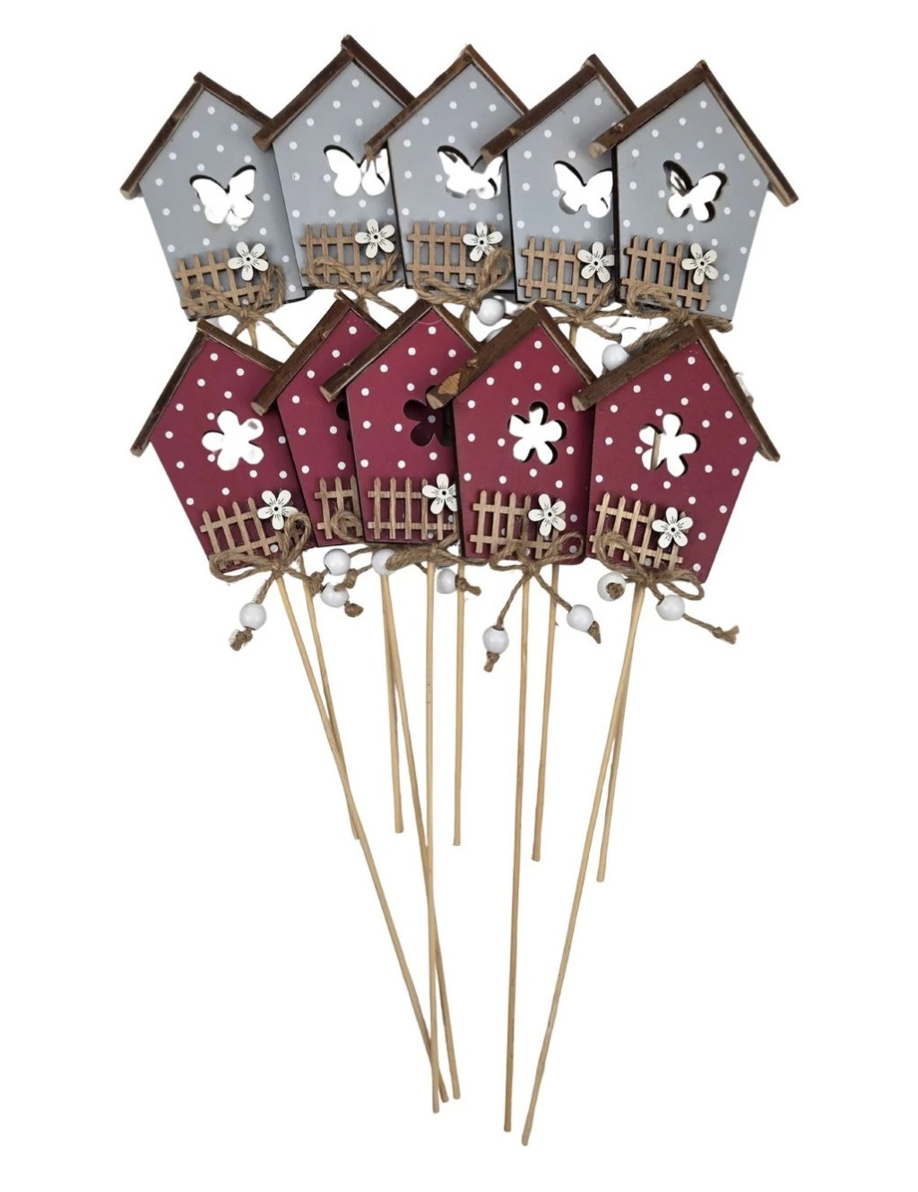 Pöttyös házikó betűző - Bordó-Szürke - 9,6x8,1 cm házikók+ betűző - 10 db/csomag