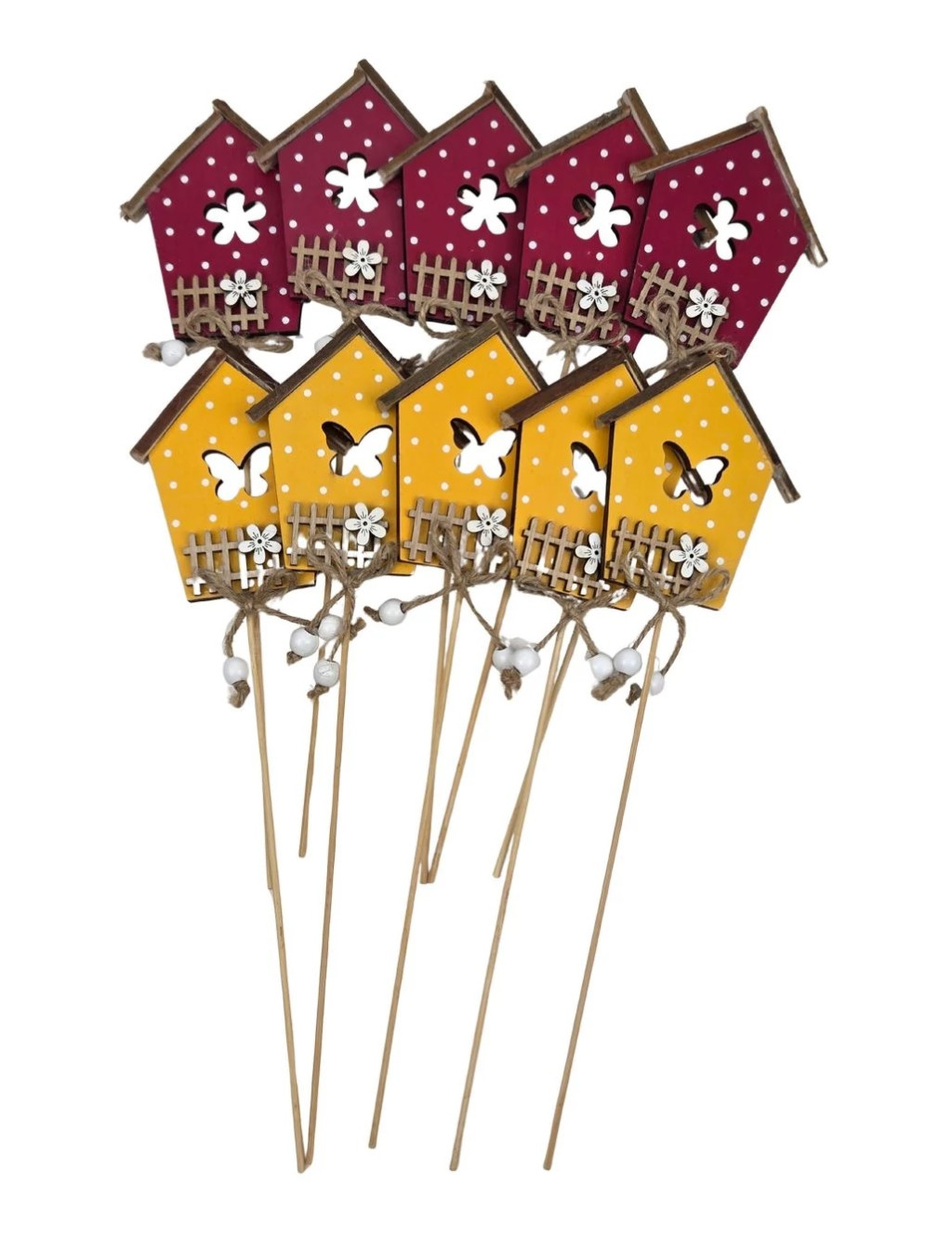 Pöttyös házikó betűző - Sárga-Pink - 9,6x8,1 cm házikók+ betűző - 10 db/csomag