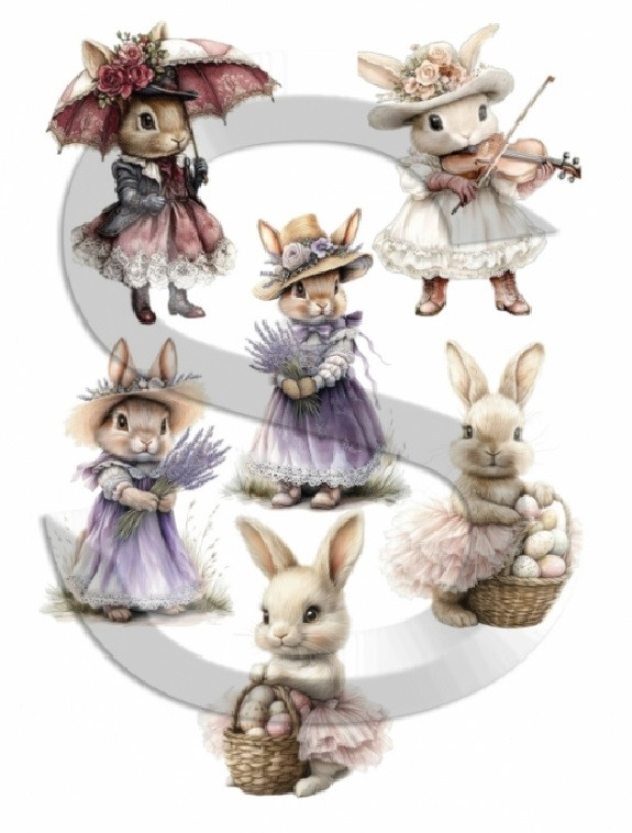 Rizspapír - A4 - 21x30 cm - Vagány nyuszilányok 2. - CK-5077