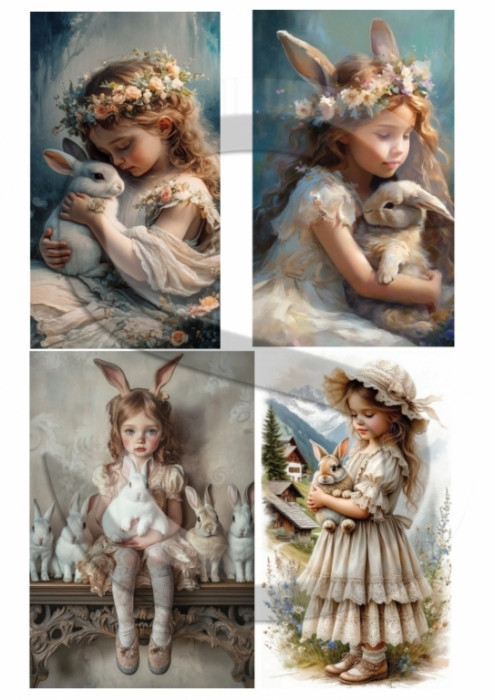Rizspapír - A4 - 21x30 cm - Nyuszik és kislányok 1. - CK-5085