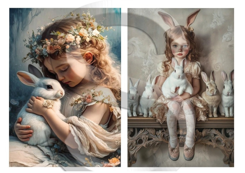 Rizspapír - A4 - 21x30 cm - Nyuszik és kislányok 2. - CK-5086