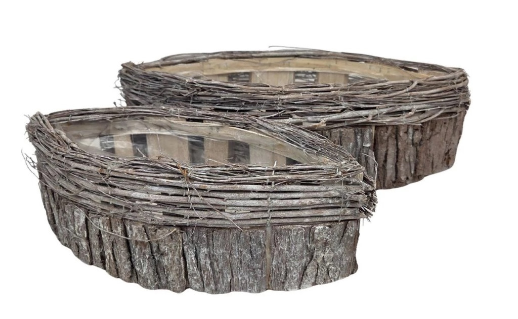 Rombusz fakéreg+vessző kosár - 44x22x14 cm, 34x15x11 cm - 2 db-os szett