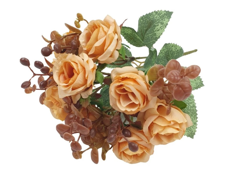 Rózsa csokor barna kiegészítővel - Antik barack - 30 cm