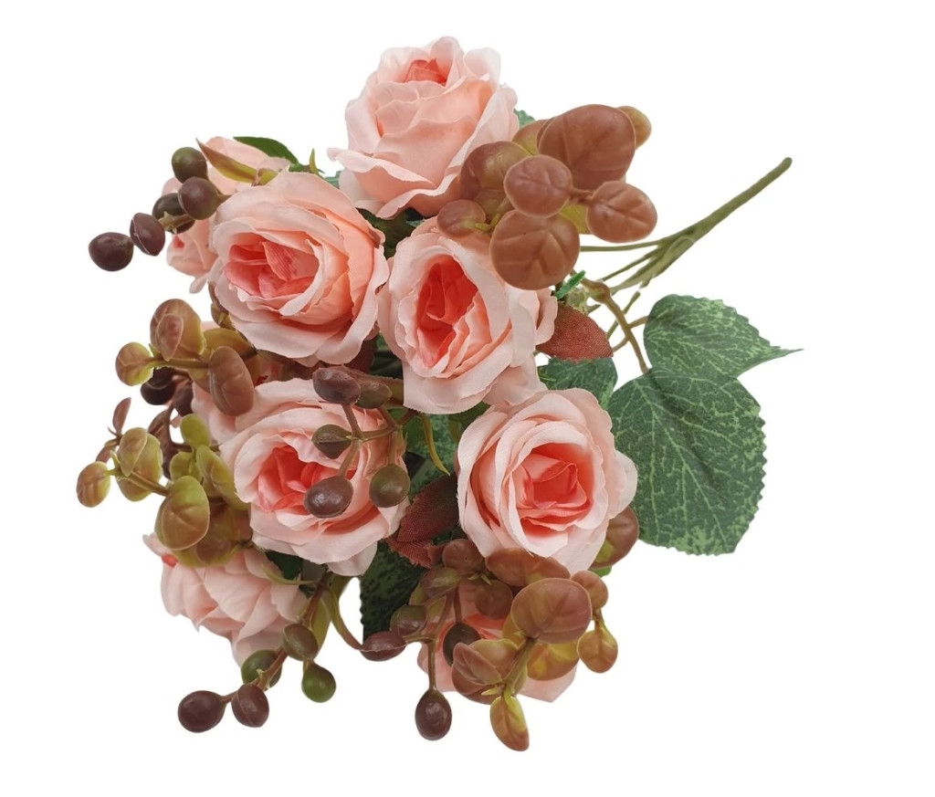 Rózsa csokor barna kiegészítővel - Rózsaszín - 30 cm