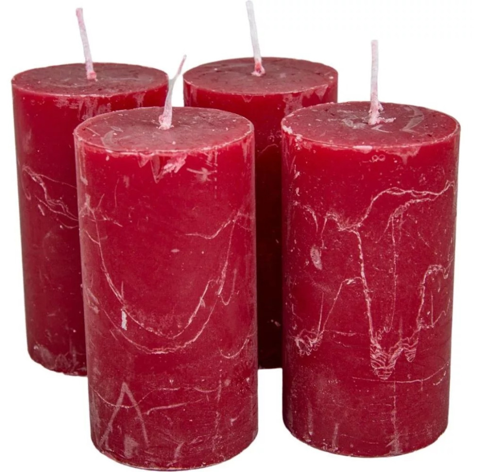 Rusztikus gyertya - Bordó - 9x5 cm - 4 db/csomag