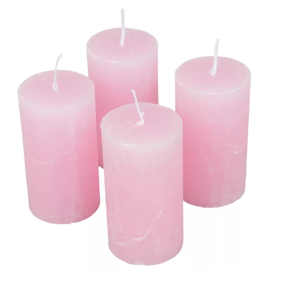 Rusztikus metál gyertya - Rózsaszín - 50x90 mm - 4 db/csomag