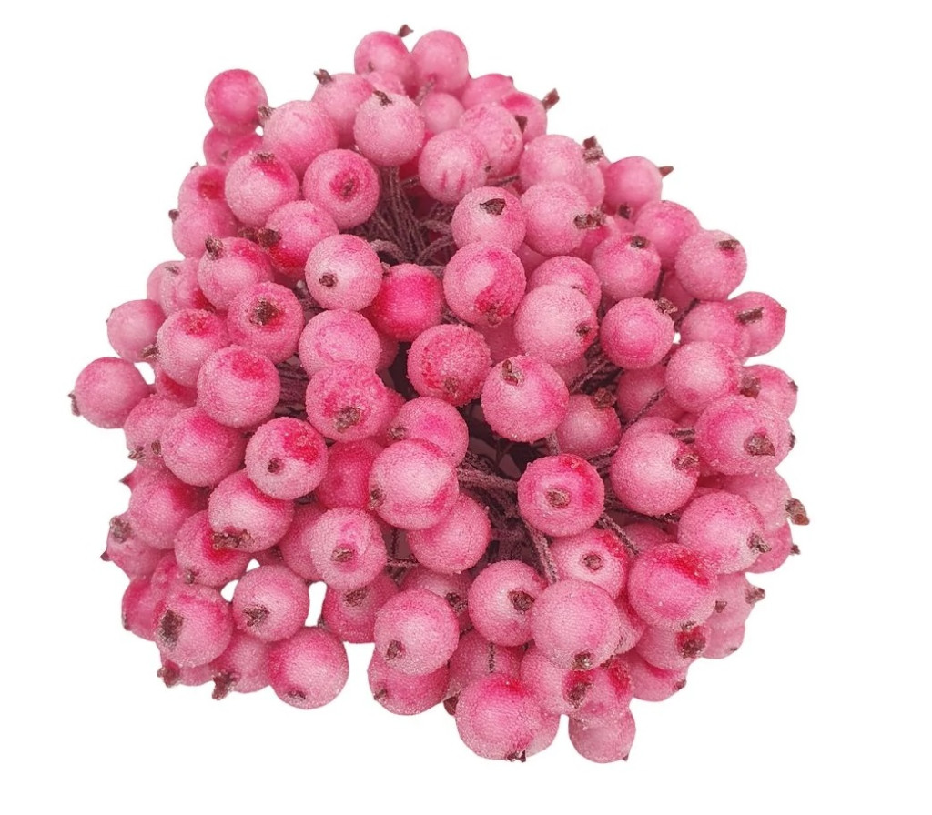 Csillámos drótos bogyó - Rózsaszín - 1 cm - 200 db/csomag