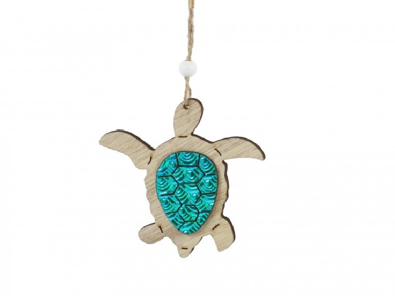 Teknős dekoráció natúr/fényes türkiz - 9 cm - Raktáron
