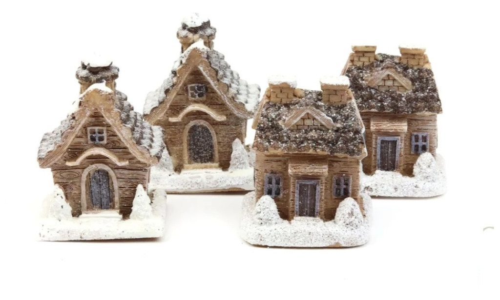 Téli házikó szett B - Barna - 6 cm - 4 db/csomag