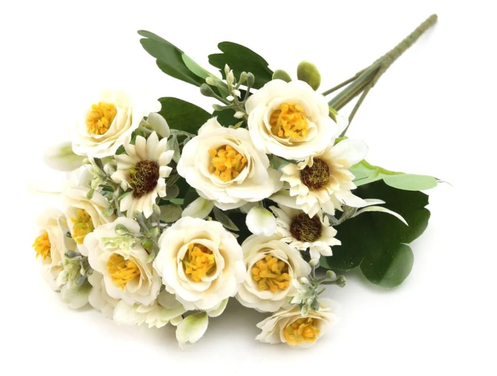 Vegyes színű kicsi csokor 122 - Tört fehér - 32 cm