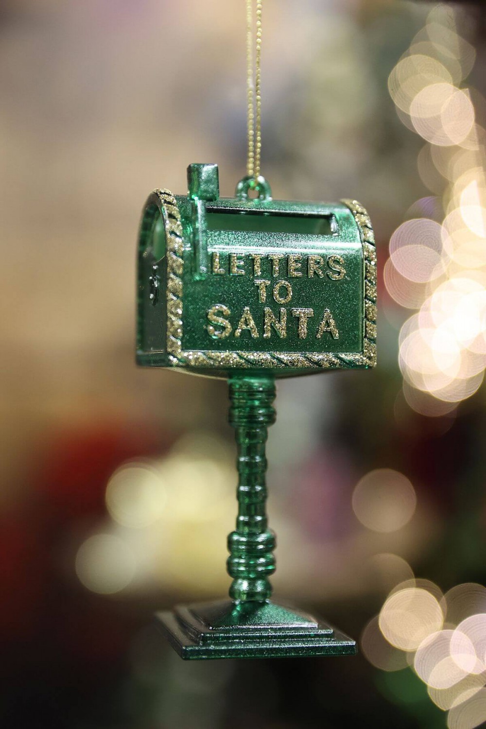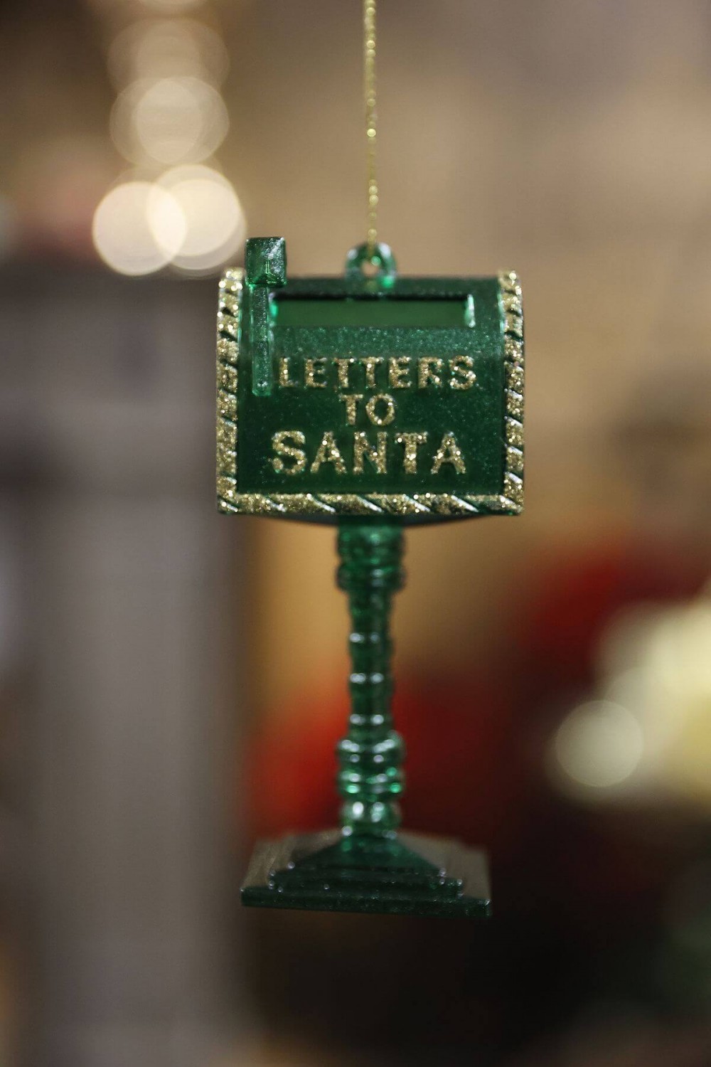 Zöld karácsonyi dekorációs postaláda - 11 cm