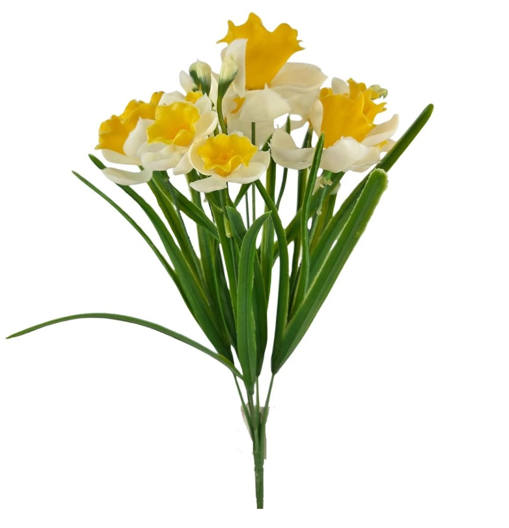 Vegyes virágú gumi nárcisz csokor - Fehér - 38 cm