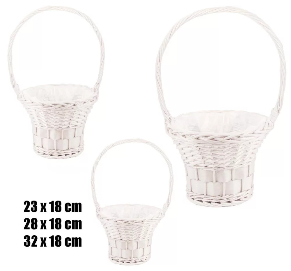 Fonott kosár - Fehér - 23 cm, 28 cm, 32 cm - 3 db-os szett