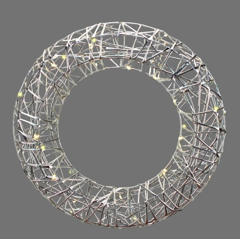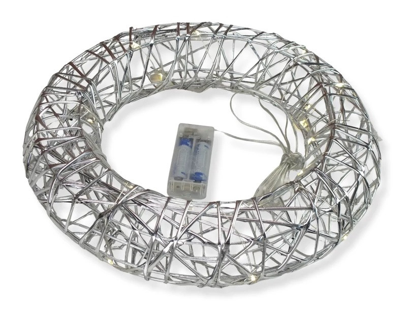 LED-es világító koszorú, ezüst színű, 20x hideg fehér mikro LED.