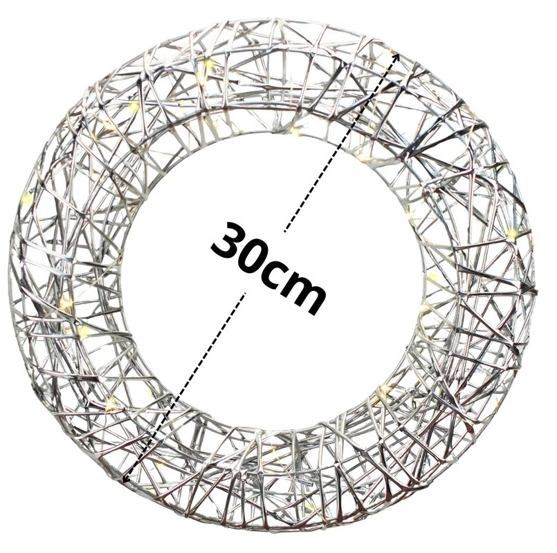 Világító koszorú, időzítővel - Ezüst - 30 cm