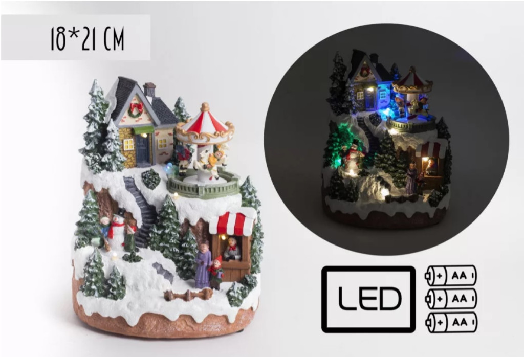Karácsonyi falu, mozgó körhintával - 21x18 ccm