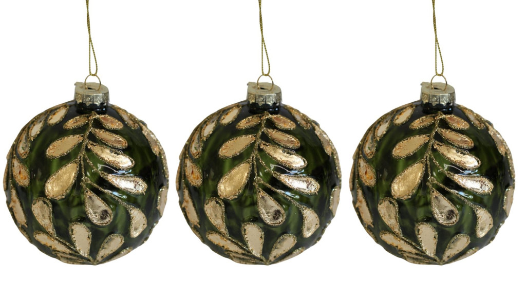 Zöld és arany üveg karácsonyi gömbök - LUX - 10 cm - 3 db/csomag