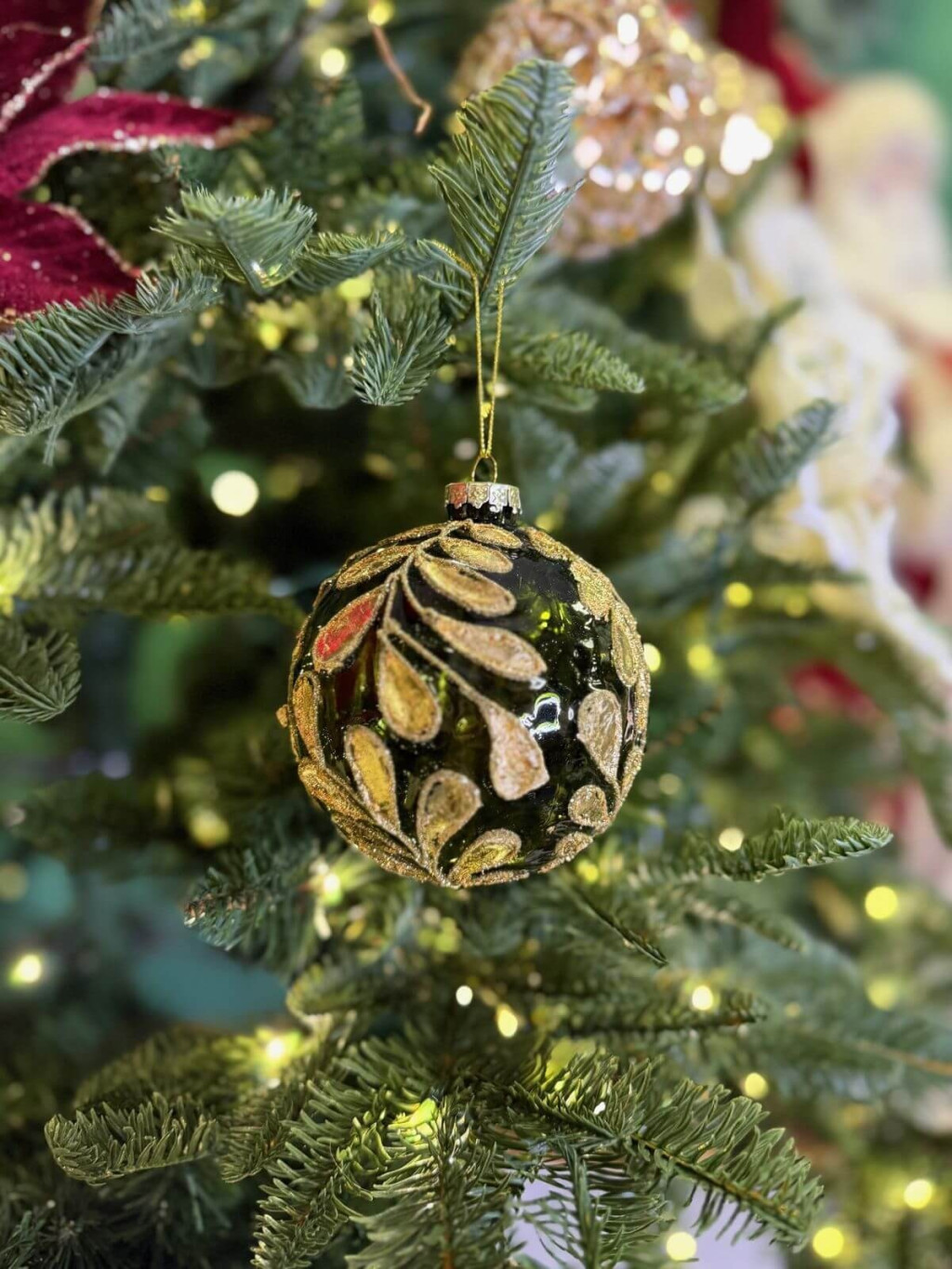 Gyönyörű karácsonyi üveggömbök zöld színben, arany díszítéssel, minden karácsonyfa kihagyhatatlan dísze lesz.