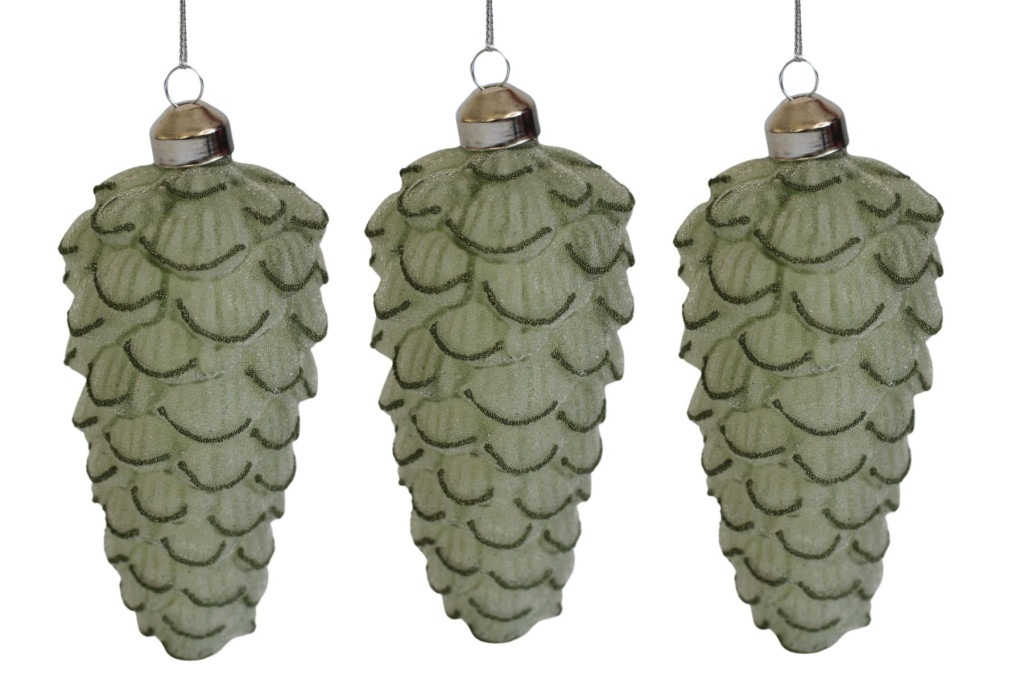 Zöld üveg fenyőtobozok - 12 cm - 3 db/csomag