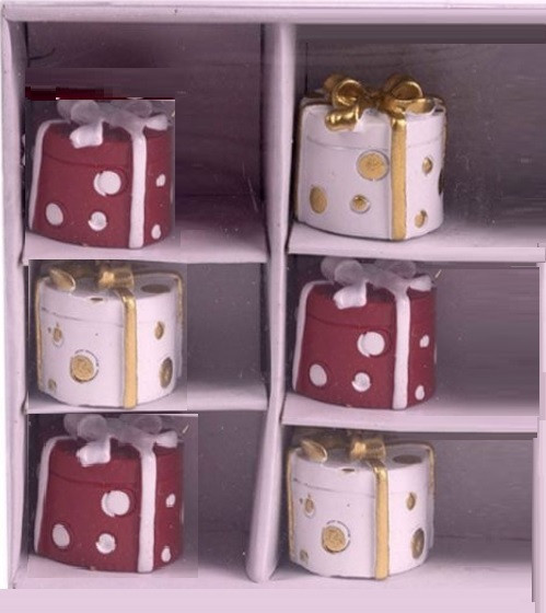 Ajándékcsomag - Piros-fehér - 2x2 cm - 4 db/csomag