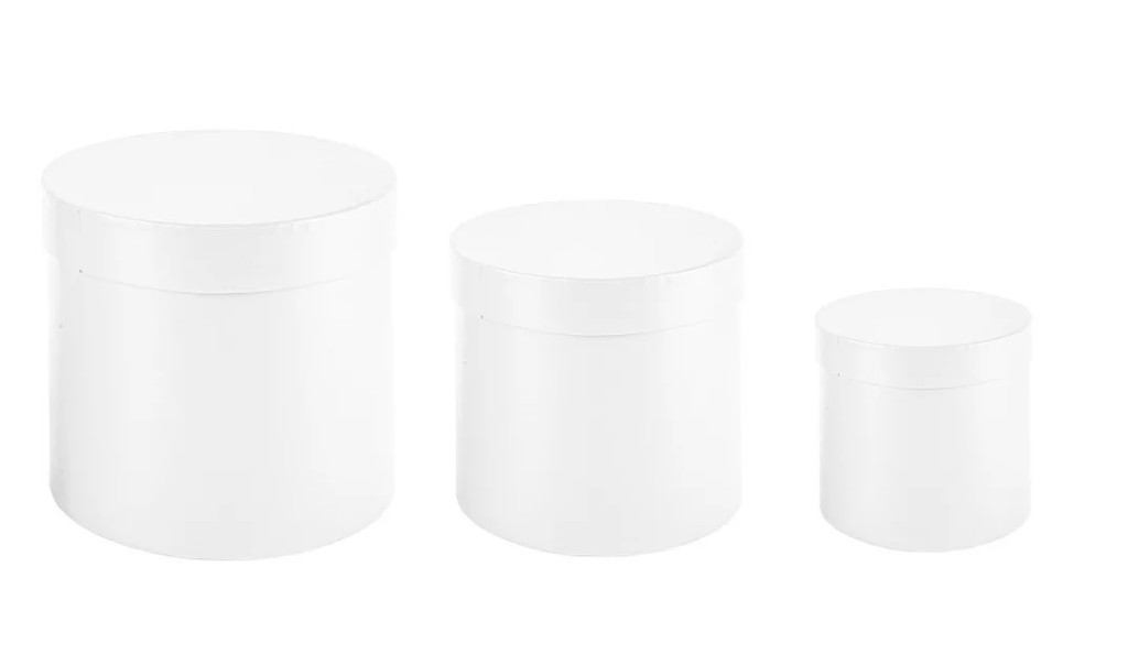 Papírdoboz kerek - Fehér - 3 db-os szett - 20 cm, 17 cm, 15 cm