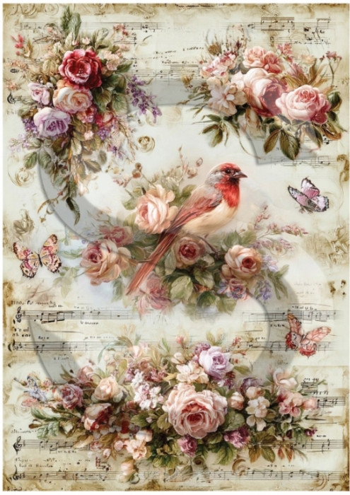 Rizspapír - A4 - Botanical-virág kollekció - Rózsás szívek - CK-5101