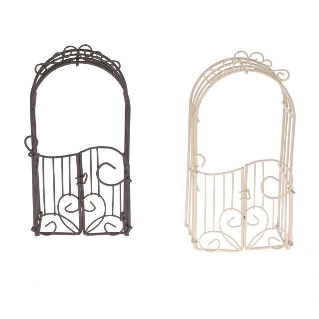 Tündérkert kapu fém - Krém/barna - 8x5x16 cm - Raktáron