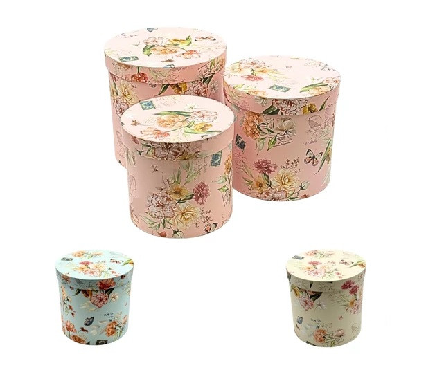 Papirdoboz virágos - 3 színben - 20,5 cm, 18,5 cm, 16,5 cm - 3 db-os szett