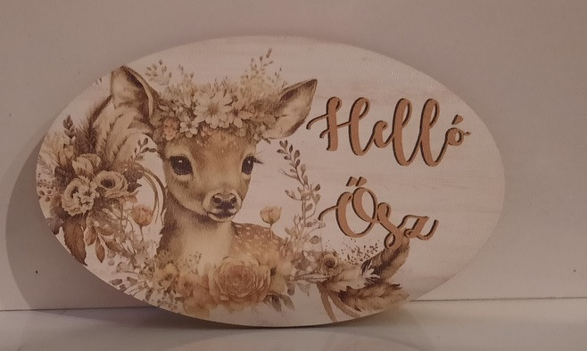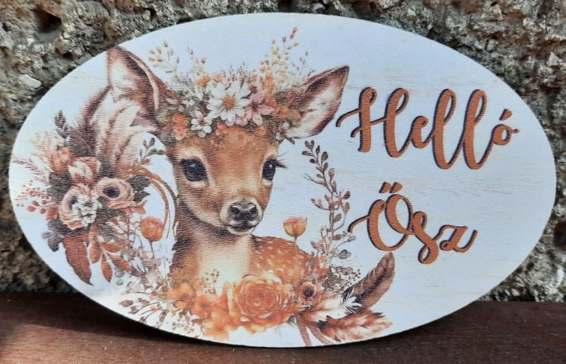 Hello ősz fatábla - Őzike - 15,5x9,5 cm