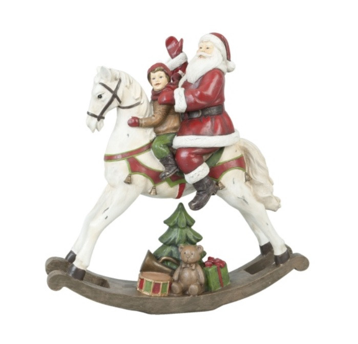 Clayre&Eef - Nosztalgia Mikulás hintalovon - 29x10x30 cm